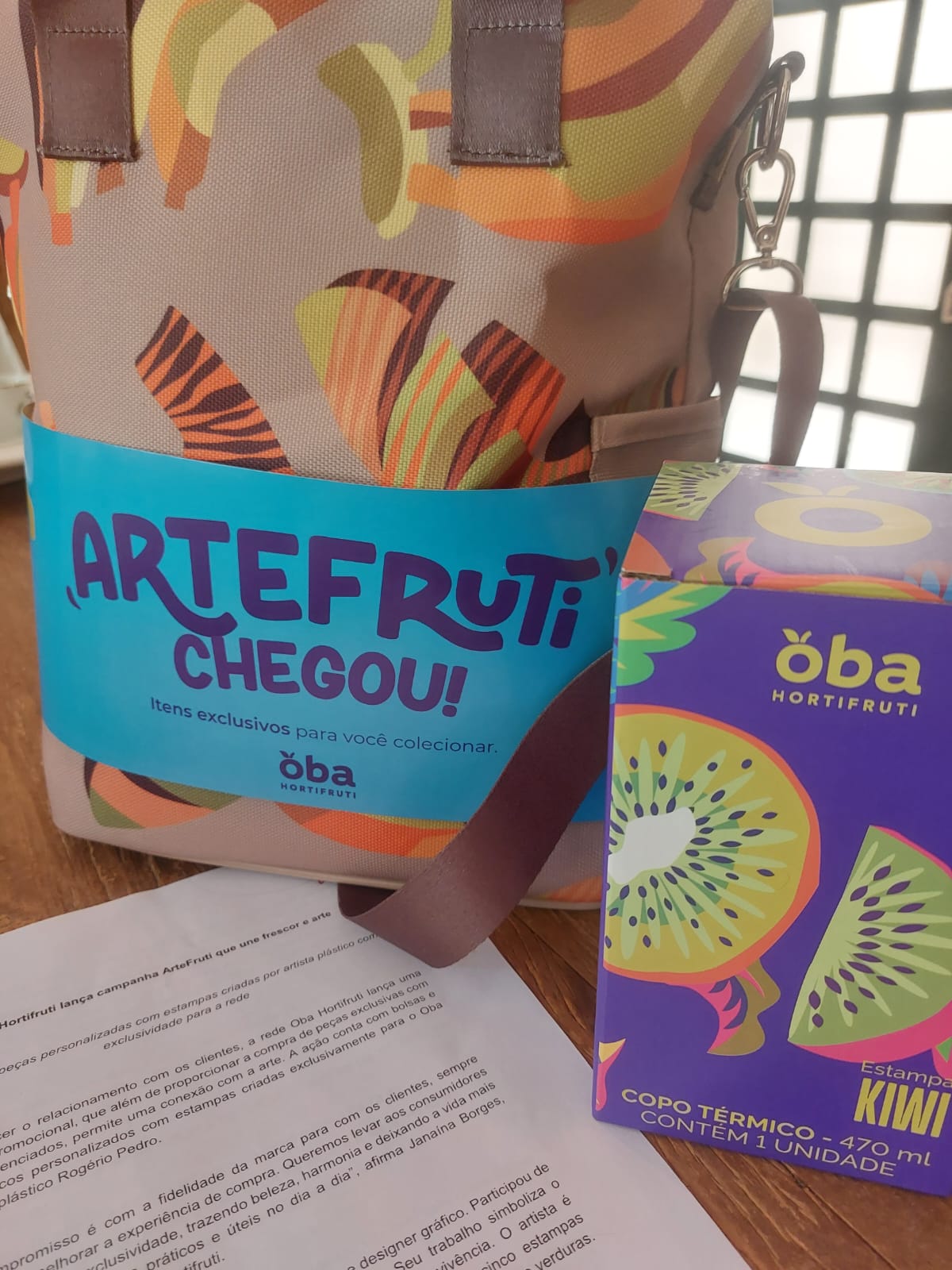 A linha denominada Artefruti tem 5 estampas diferentes, que ilustram as bolsas e copos térmicos. A venda com desconto é direcionada para clientes cadastrados no programa de fidelidade Cliente Bem Querer. A iniciativa, que segue até 16 de novembro, é válida para compras realizadas tanto nas unidades físicas da rede como nos canais on-line. Quem não faz parte do programa de fidelidade pode se cadastrar pelo site: loja.obahortifruti.com.br/cadastro ou pelo aplicativo Oba Hortifruti.
