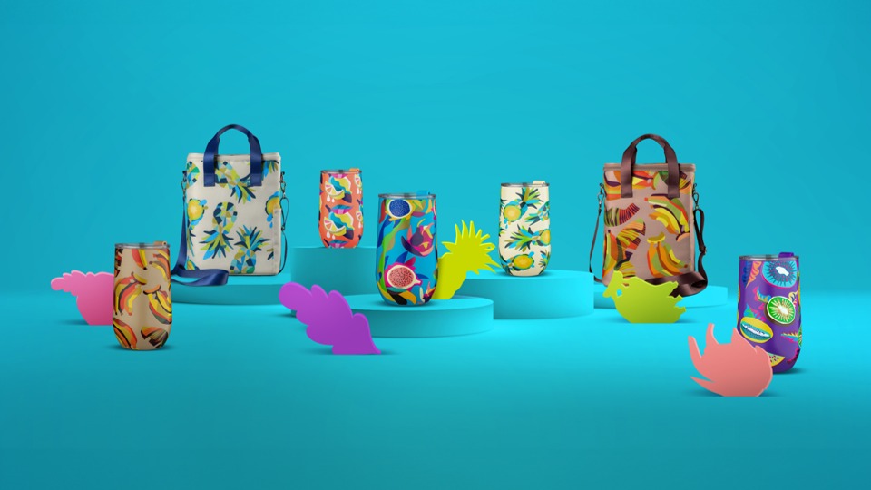 Clientes do programa de fidelidade do hortifruti poderão adquirir bolsas e copos térmicos com estampas criadas por Rogério Pedro com preços especiais