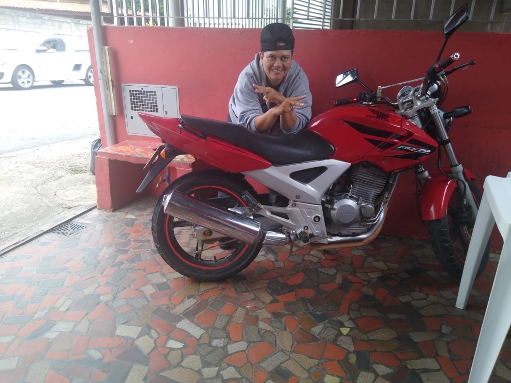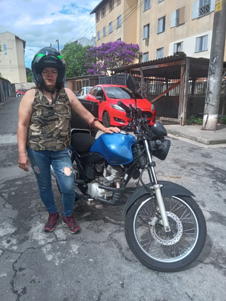 “Fui com meu marido até uma concessionária. Quando vi uma motocicleta, foi paixão à primeira vista. Comprei, mesmo sem ter a carteira de habilitação”, relembra.