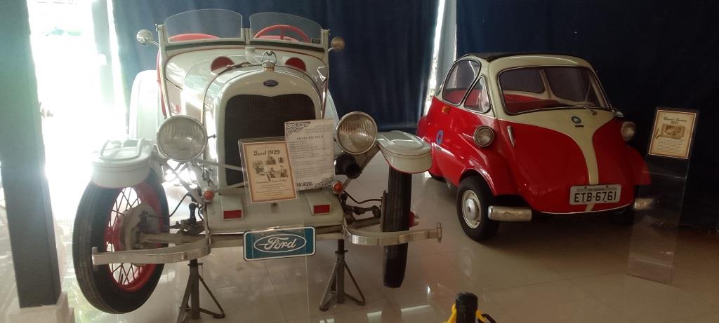 Segundo a ficha técnica anexa, ambos com motor de 40 VC , 2.800 rpm, quatro portas, (o Chevrolet conversível), capazes de atingir os incríveis 75 km de máxima.Outro Ford é um modelo 29, o “queridinho de Bonnie & Clyde”, aqui adaptado para competições. O modelo do Museu participou do Rally Rio São Paulo, chegando em segundo lugar. A pequena Romi Isetta, 1957, o menor carro já fabricado no Brasil, entre 1956 e 1971, em Santa Bárbara do D’oeste (SP), pela Romi S/A.