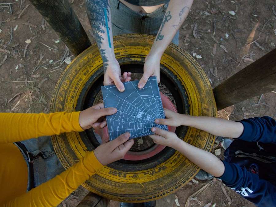 “Após muitos encontros regados a boas referências, imaginação e citações científicas sobre aracnídeos, recebi as ilustrações para compor o texto que já conhecia. Diagramar este projeto foi prazeroso pois envolveu muito afeto nas relações que estabelecemos de trabalho, feito linha de teia, sempre em conexão”, complementa Laís Blanco, designer e diagramadora do projeto gráfico.