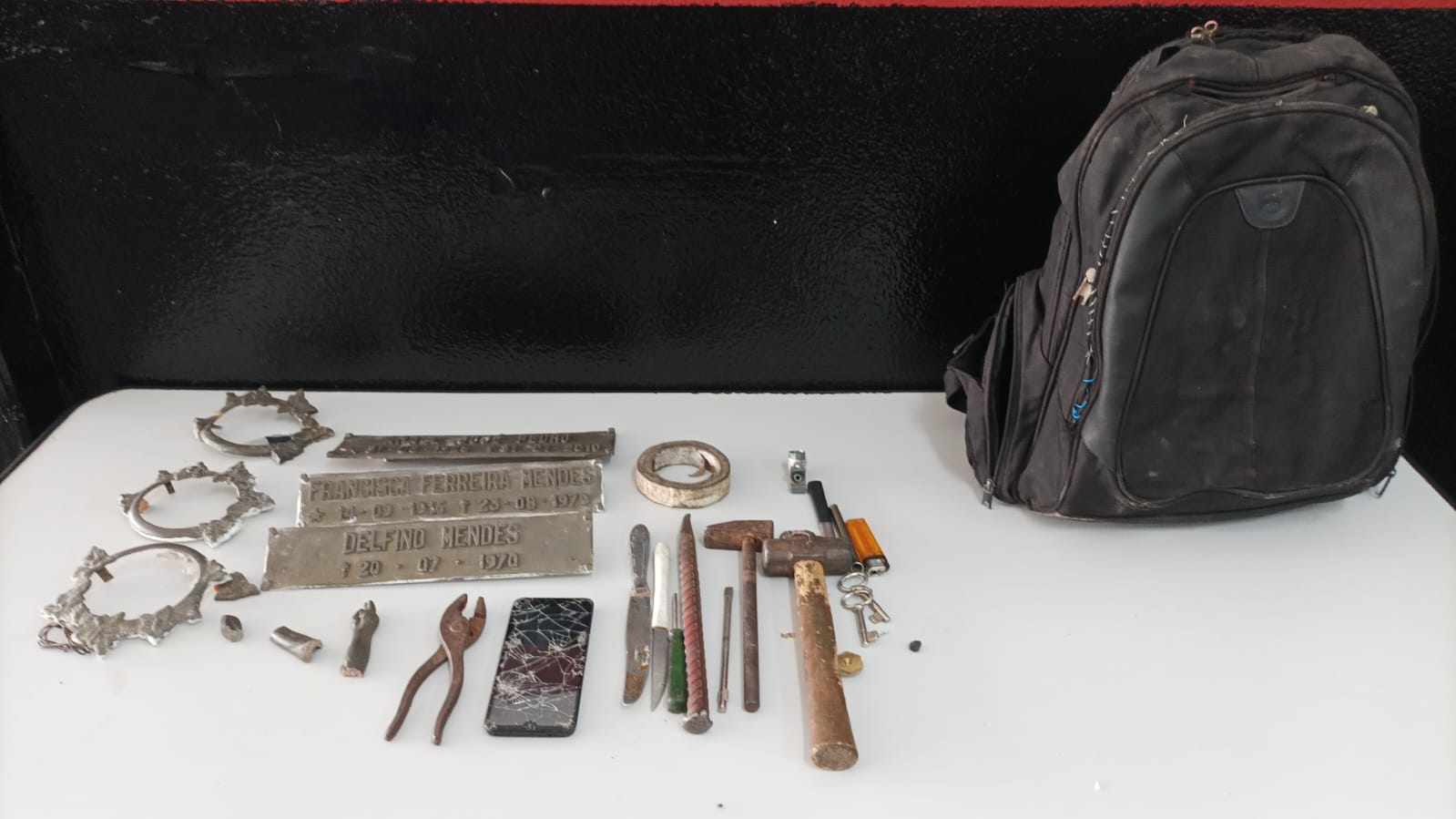 A Guarda Municipal de Campinas prendeu um homem furtando peças no Cemitério da Saudade. Foram apreendidas três placas de bronze, três molduras que tinham ainda as fotos e mais quatro pedaços de bronze.
