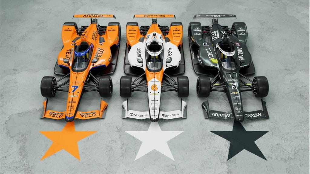 E o VELO Arrow McLaren Chevrolet nº 7 de Alexander Rossi correrá totalmente na cor papaia para lembrar o M16C/D que em 1974 garantiu a Johnny Rutherford a primeira vitória da McLaren nas 500 Milhas de Indianapolis.