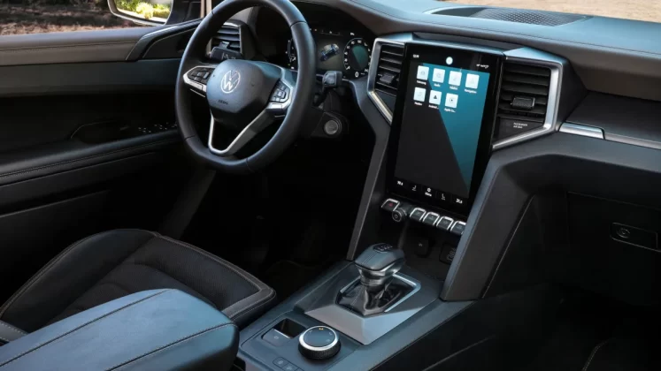 Para isso, a nova Amarok vem de fábrica com um painel de instrumentos digital e uma tela sensível ao toque orientada para retrato para o sistema de infoentretenimento, e a lista de opções inclui um sistema de som Harman Kardon. O controle de cruzeiro adaptativo é um dos mais de 20 auxiliares de direção oferecidos globalmente.