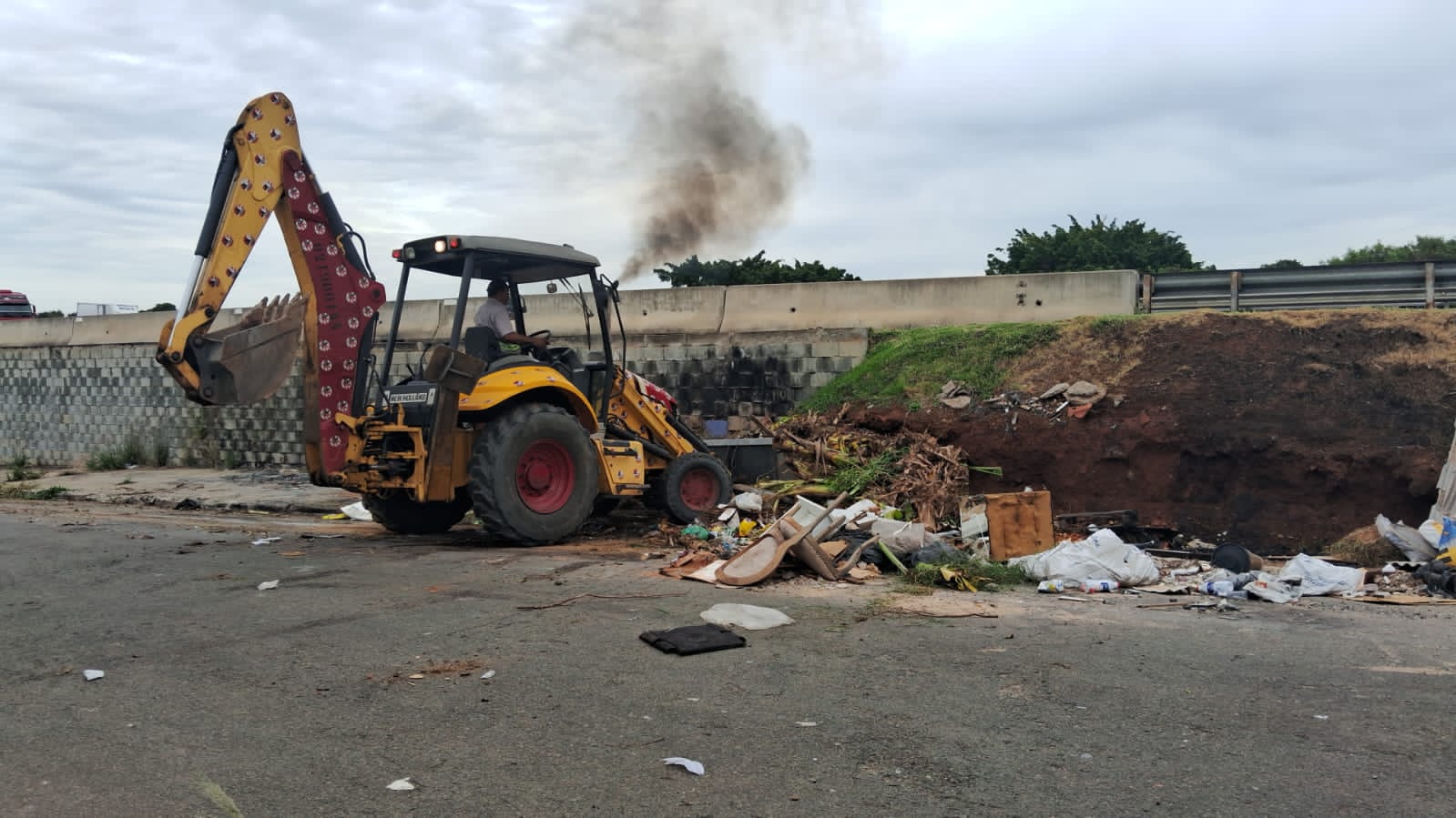 Para retirar todo esse descarte em áreas verdes, foram utilizadas máquinas pesadas como pás carregadeira; caminhões basculantes, carrocerias e tocos; tratores roçadeira; retroescavadeira, entre outras, em várias viagens.
