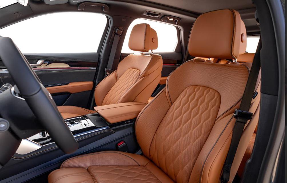 O interior manteve o mesmo acabamento premium, com materiais de alta qualidade e uma arquitetura minimalista. Traz duas opções de tonalidade de acabamento: marrom ou preto.