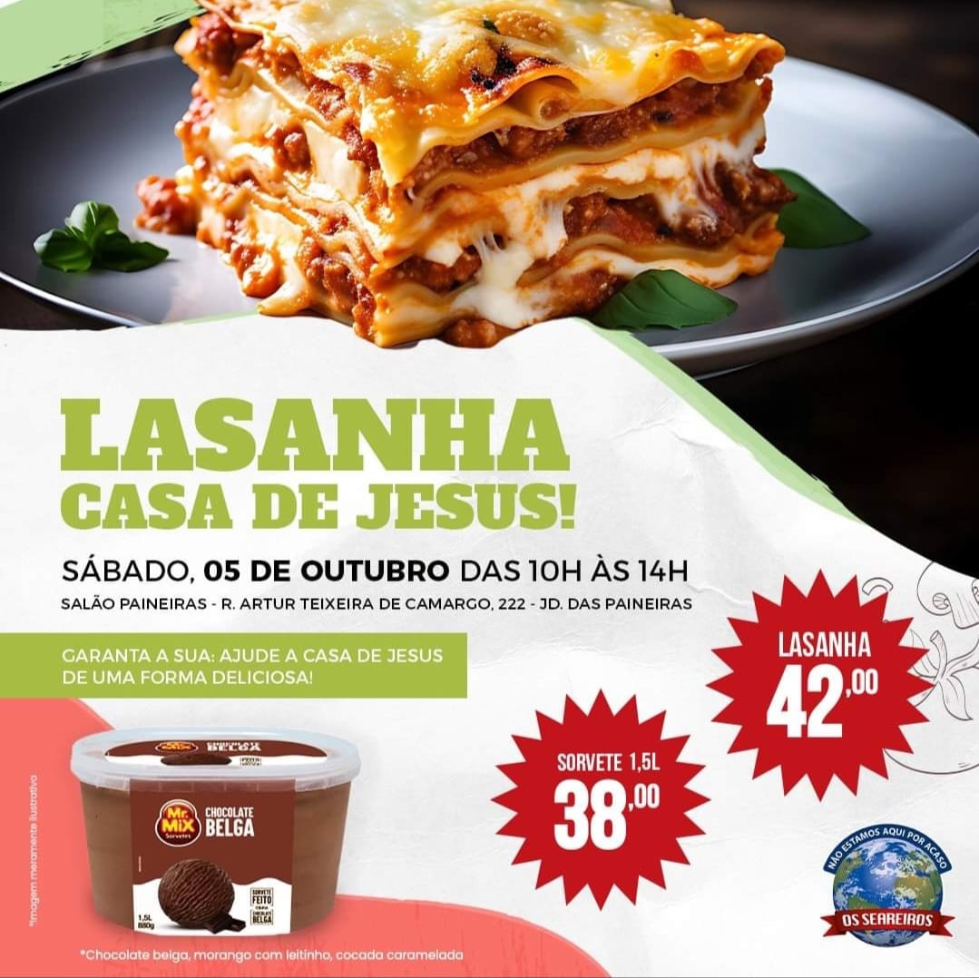 Lasanha Beneficente da Casa de Jesus será dia 7 de março